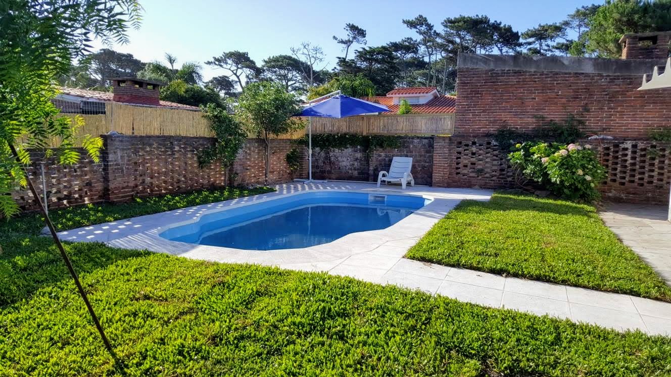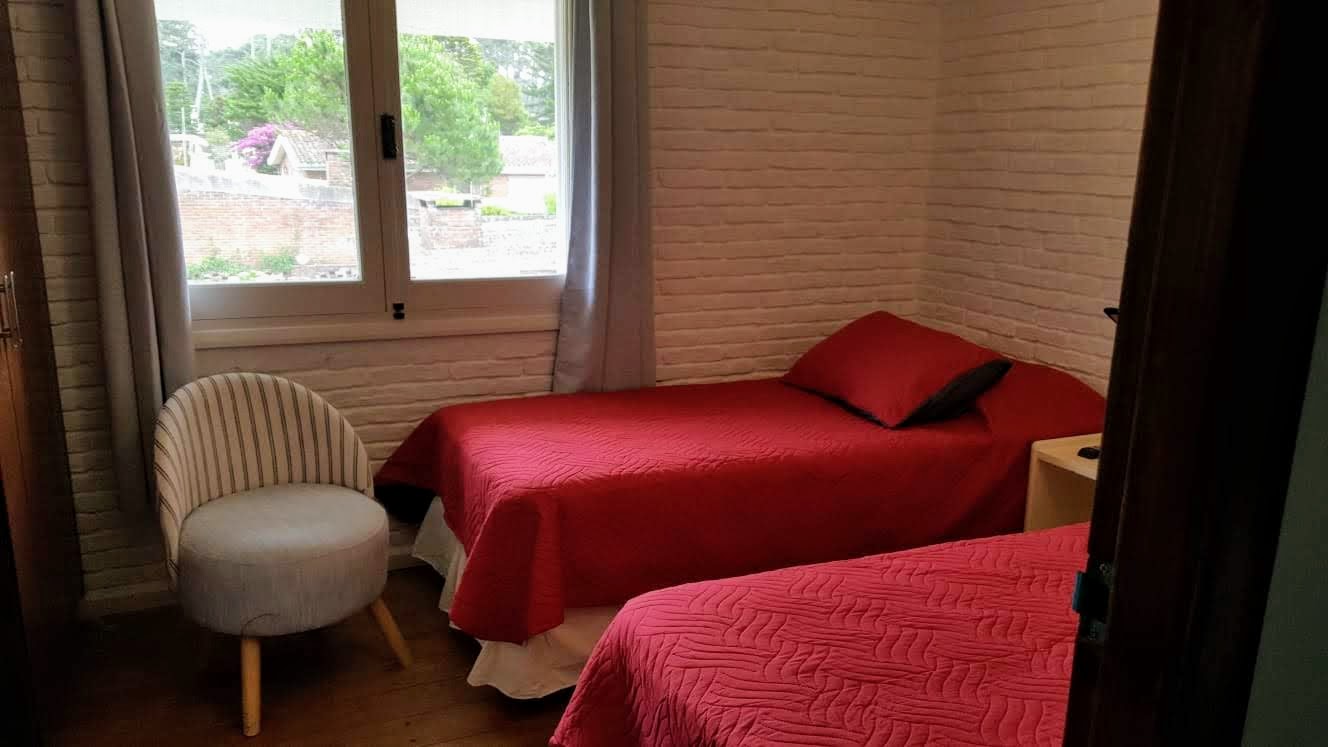 Dispone de cuatro dormitorios: uno de ellos en suite con vestidor. Todos de ellos con: TV LCD, aire acondicionado, amplios placares y pueden presentarse con cama de una o dos plazas según necesidad. Cuenta además con dormitorio y baño de servicio independiente en BBQ. Capacidad para 10 personas Recibidor, amplio y luminoso living, con LCD 42”, equipo de audio, estufa a leña. Comedor independiente, TV por cable, WI-FI Cocina moderna de 20 m2 con desayunador, anafe, horno eléctrico (convector), heladeras con freezer, microondas, lavavajilla, lavarropa y juegos de vajilla para 12 personas. Barbacoa vidriada (40 mts) con vista hacia el deck y jardín con piscina climatizada (solar), reposeras. Cámaras de seguridad exteriores.