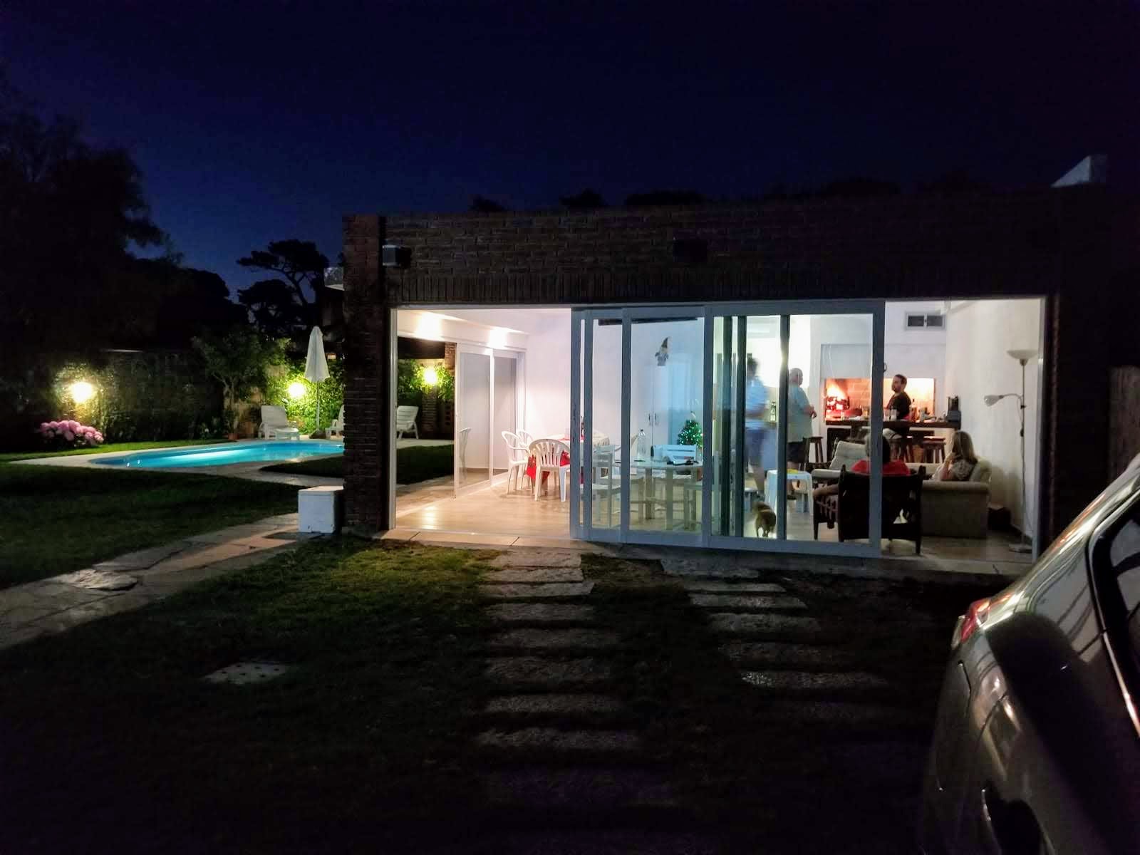 Dispone de cuatro dormitorios: uno de ellos en suite con vestidor. Todos de ellos con: TV LCD, aire acondicionado, amplios placares y pueden presentarse con cama de una o dos plazas según necesidad. Cuenta además con dormitorio y baño de servicio independiente en BBQ. Capacidad para 10 personas Recibidor, amplio y luminoso living, con LCD 42”, equipo de audio, estufa a leña. Comedor independiente, TV por cable, WI-FI Cocina moderna de 20 m2 con desayunador, anafe, horno eléctrico (convector), heladeras con freezer, microondas, lavavajilla, lavarropa y juegos de vajilla para 12 personas. Barbacoa vidriada (40 mts) con vista hacia el deck y jardín con piscina climatizada (solar), reposeras. Cámaras de seguridad exteriores.